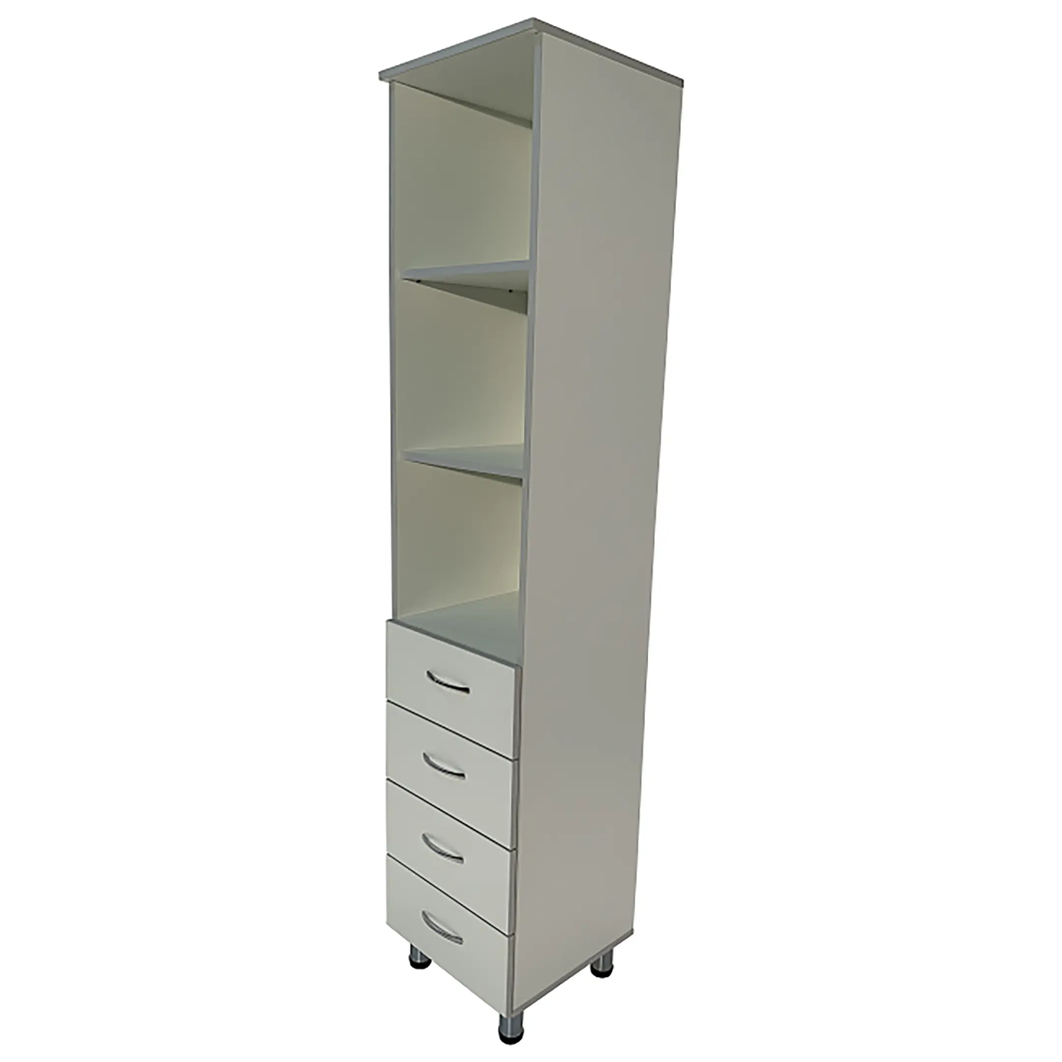 • Ниша шкафа разделена на отделения, что помогает эффективно организовать хранение и быстро находить необходимые материалы.
