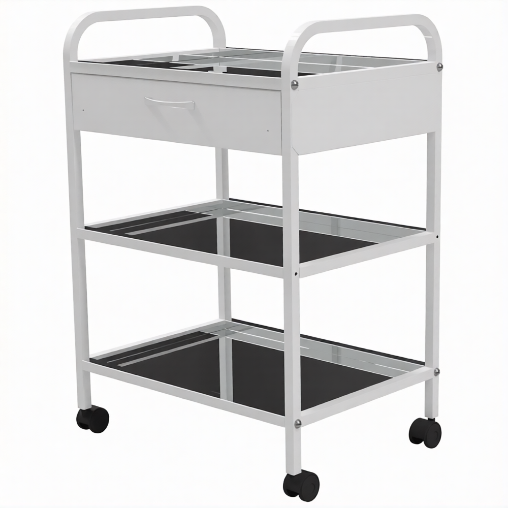 Стол медицинский инструментальный СМИ-03-01 (полки металл, колёса серая резина)