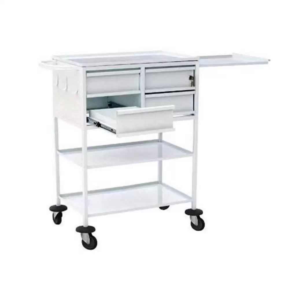 Стол-тележка для перевязочной предназначен для транспортировки инструментов, грузов, лекарственных средств, бинтов и перевязочных материалов. Используется в санаториях, больницах и поликлиниках.