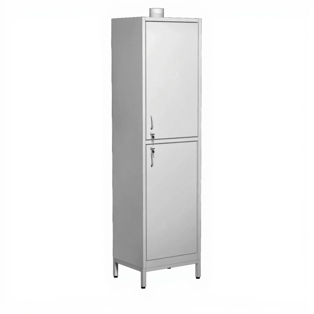 - Двухсекционная конструкция — верхняя и нижняя секции с отдельными дверками и замками для удобного разделения реактивов.