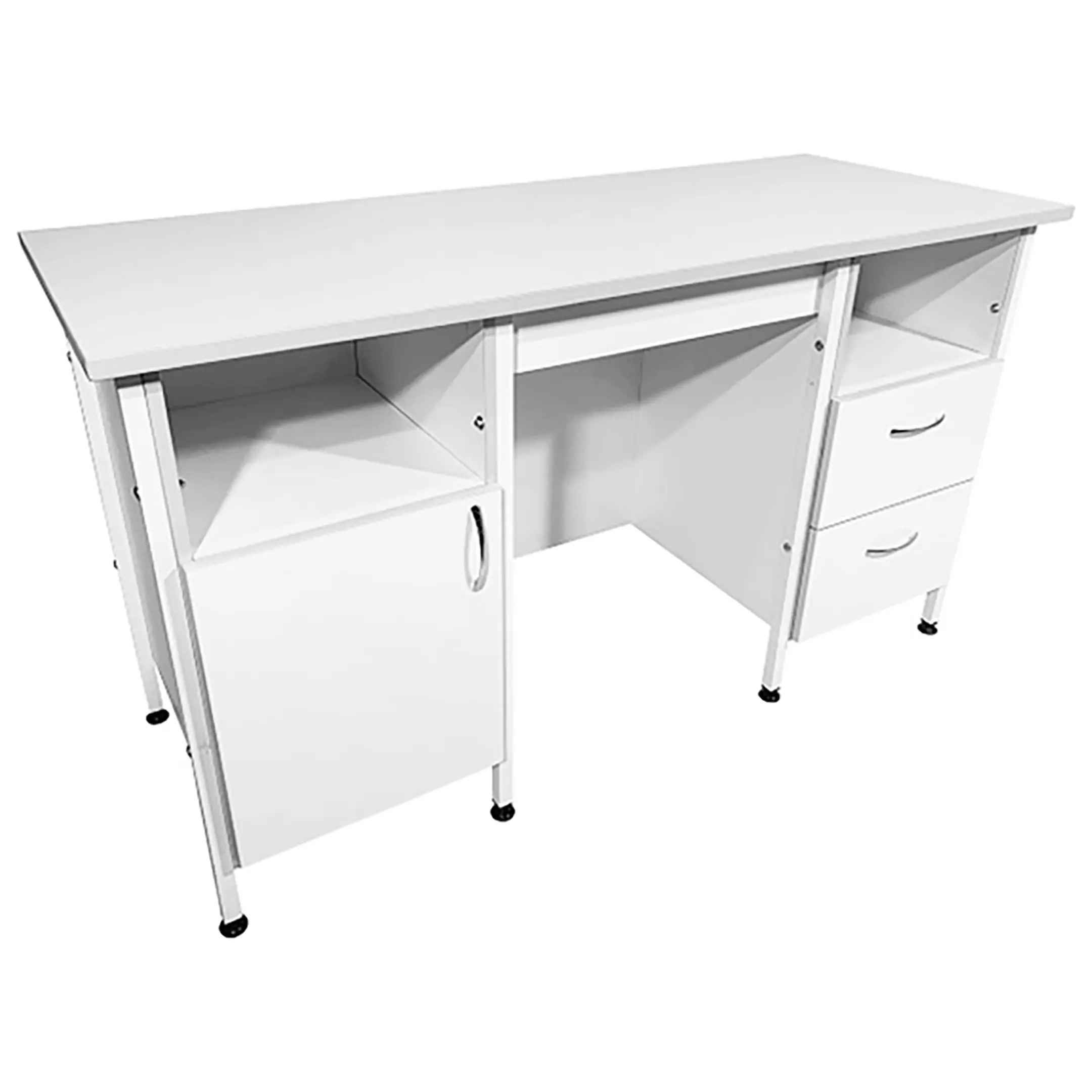Стол лабораторный СЛ 12.020 (белый) представляет собой идеальное решение для организации эффективного рабочего места сотрудников как в лабораториях, так и в медицинских учреждениях. Модель оснащена двумя тумбами с открытыми нишами: одна с распашной дверкой и полкой, вторая с двумя выдвижными ящиками. Каркас выполнен из стального профиля, столешница из ЛДСП толщиной 22 мм.