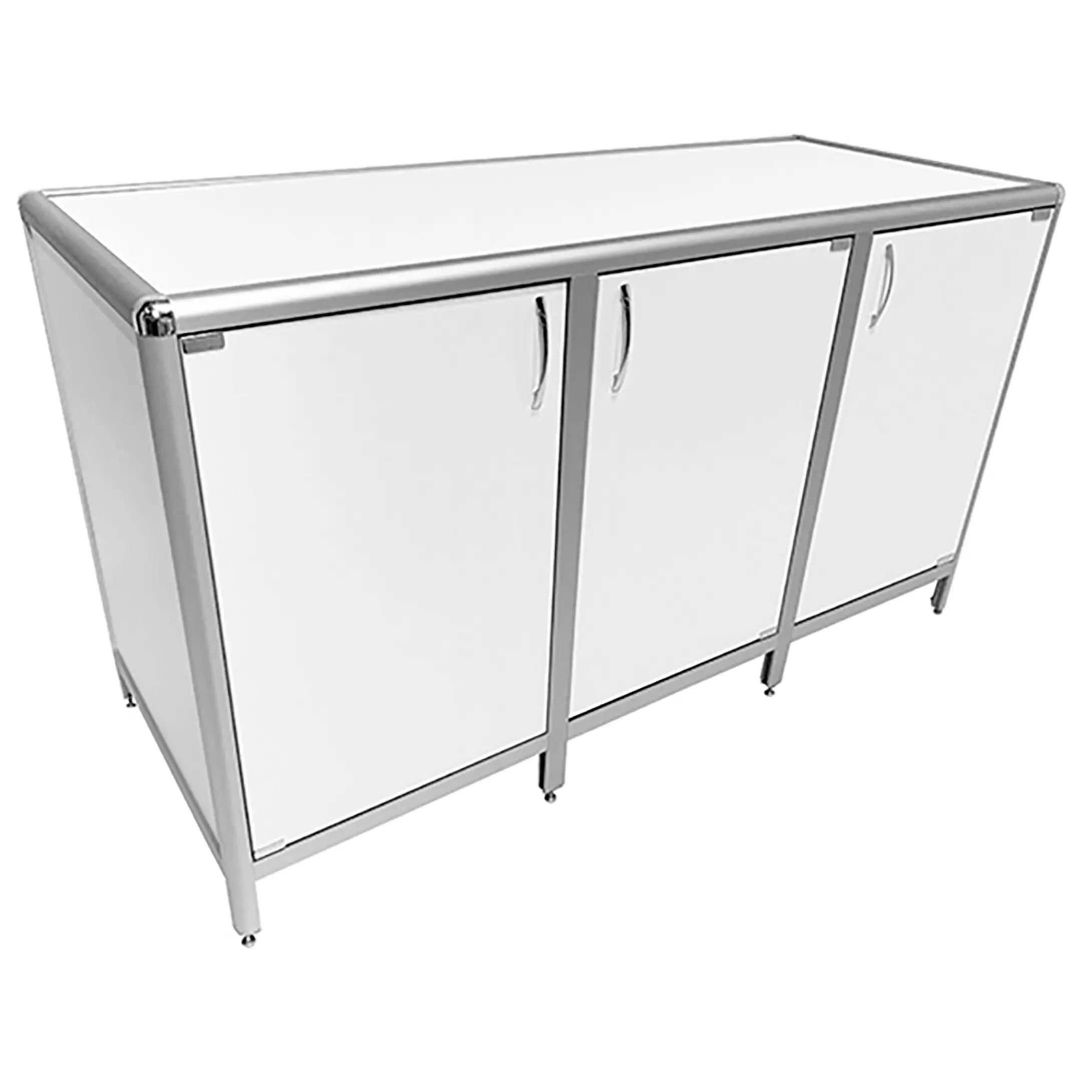 Стол-тумба лабораторная MED 12.018al (белый) — это функциональное решение для хранения лабораторного инвентаря, приборов и материалов в лабораториях и медицинских учреждениях. Модель оснащена тремя отделениями под столешницей, каждое с распашными дверками и полкой внутри (полки 467х545 мм). Каркас выполнен из алюминиевого профиля, столешница из ЛДСП толщиной 16 мм.