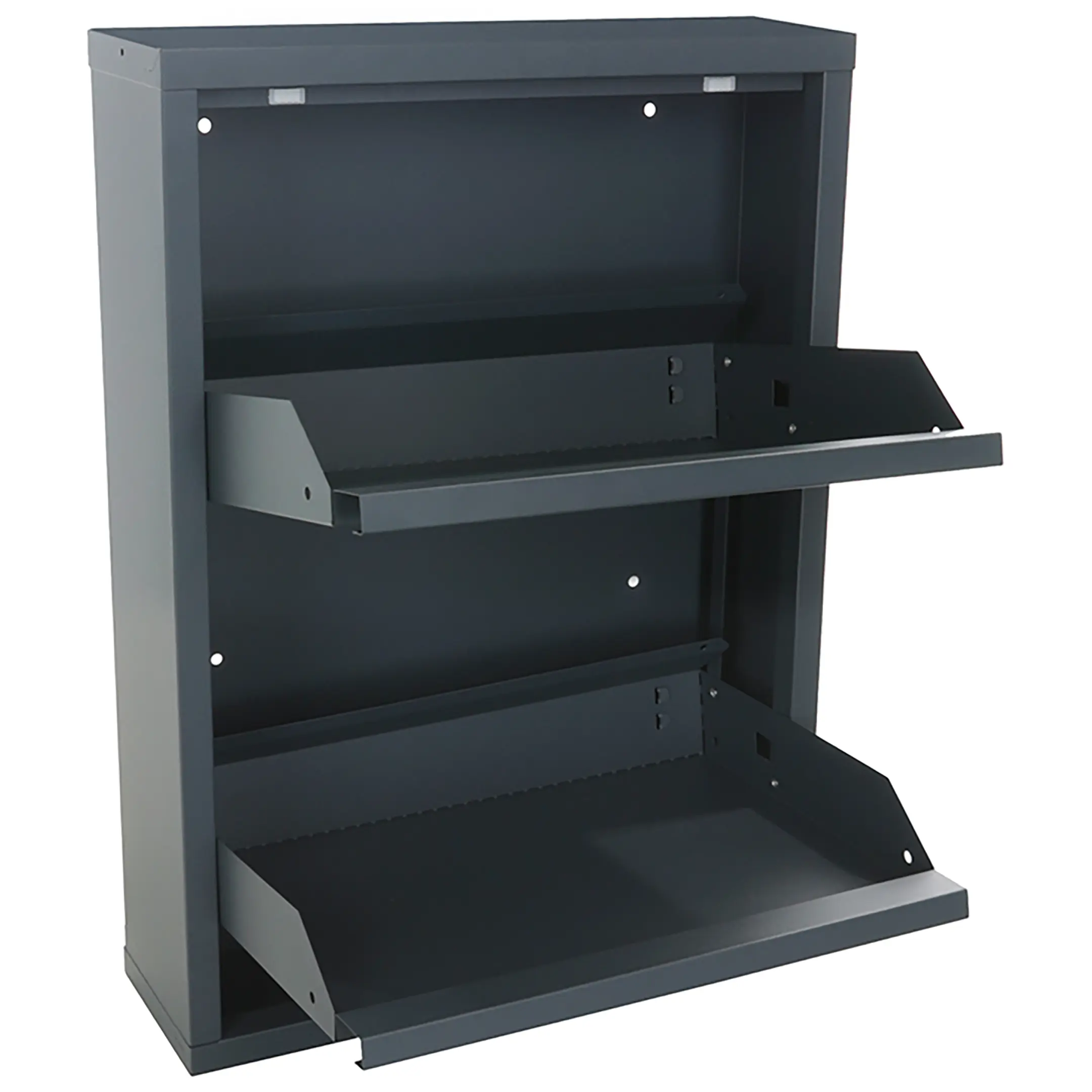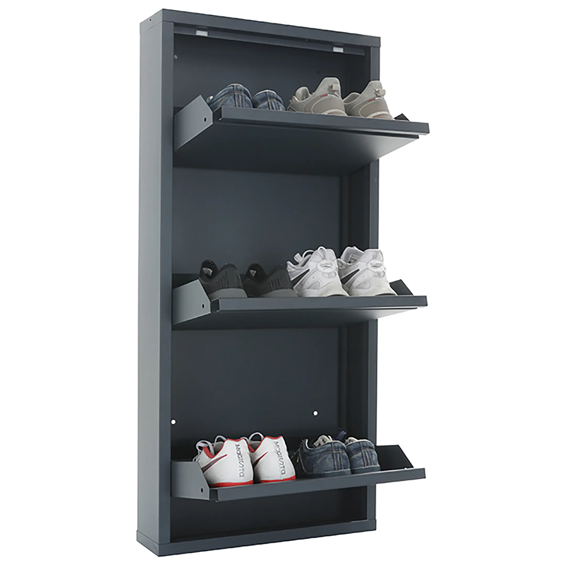 - Открытые полки для удобного доступа и вентиляции — конструкция обеспечивает быстрый доступ к обуви и способствует естественной циркуляции воздуха, что важно для проветривания сменной обуви в течение дня.