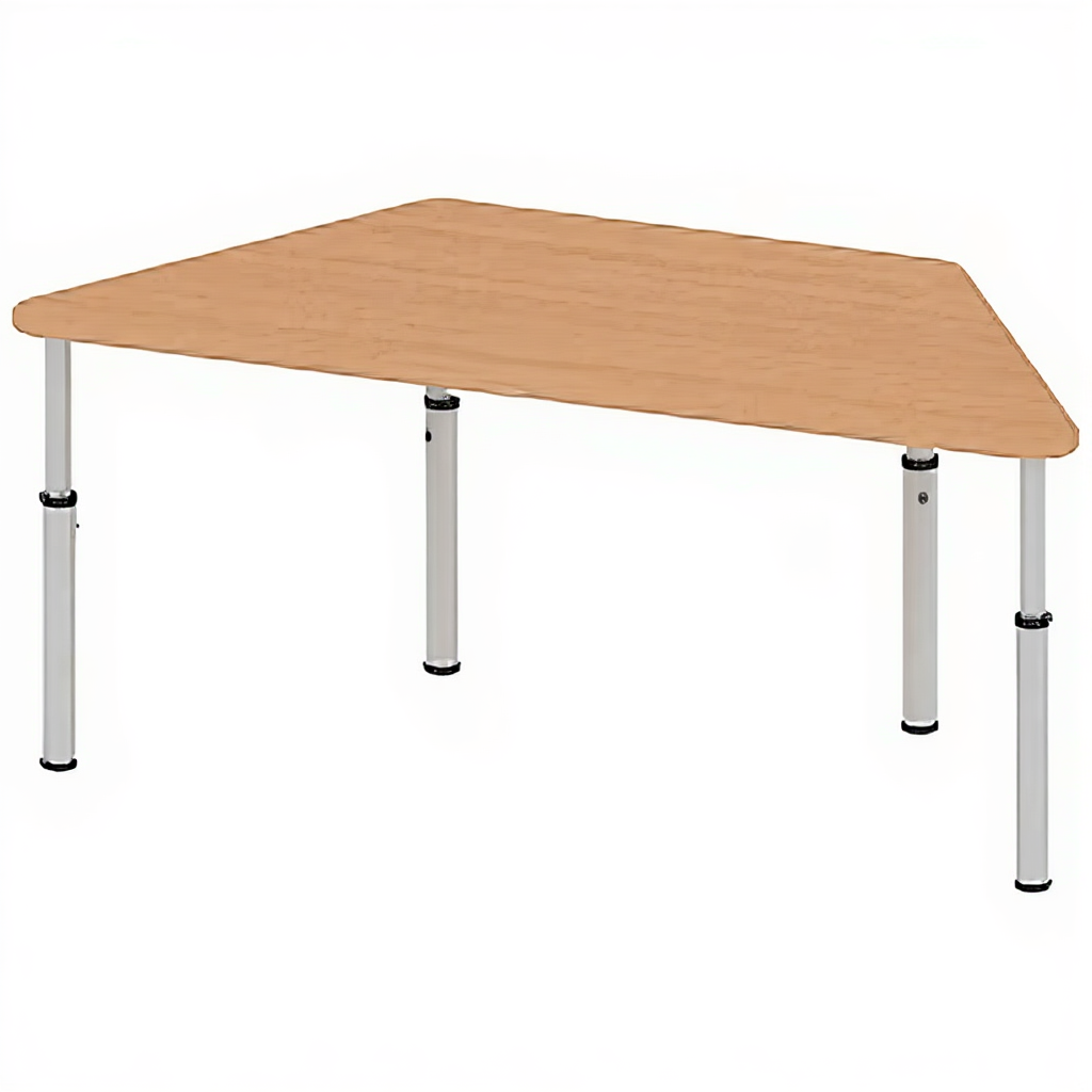Стол регулируемый «Трапеция» ПР-ТР-9, бук бавария светлый — это эргономичная мебель для оснащения современных образовательных пространств, учебных классов и творческих студий. Модель сочетает теплую столешницу из бука "Бавария" светлого оттенка с трапециевидной формой и системой регулировки высоты, что создает комфортные условия для групповой работы и позволяет адаптировать стол под различные ростовые группы учащихся.