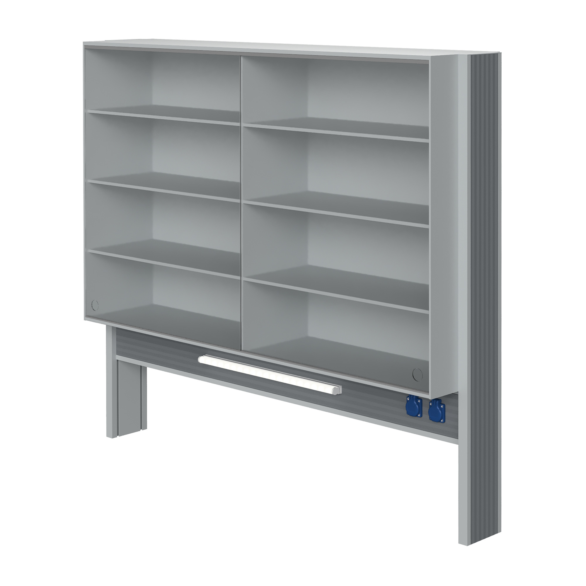Технологический стеллаж со шкафом 900 мм для пристенного стола Mod. 1500 ТСПШ-90 — это специализированное лабораторное оборудование, устанавливаемое на пристенные столы и предназначенное для хранения лабораторной посуды, приборов, реактивов и принадлежностей. Модель оснащена вместительным шкафом с двумя раздвижными стеклянными дверями, тремя полками, блоком электророзеток повышенной защиты и светодиодным светильником для местного освещения рабочей зоны.