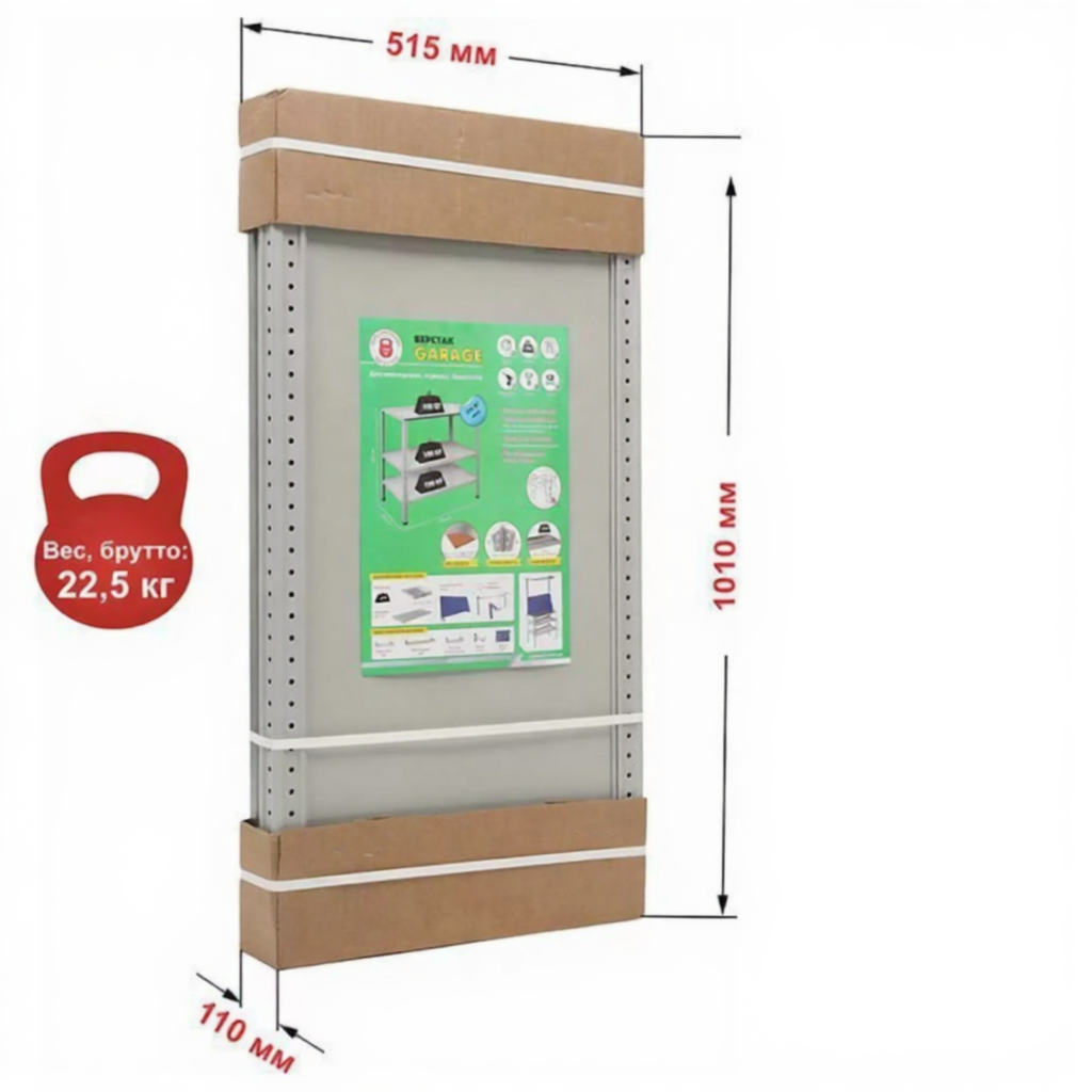 Верстак GARAGE №112 — это надежное и функциональное решение для организации отдельного рабочего места в гараже или на балконе и хранения инструментов, материалов, разнообразных приспособлений и оснастки. Главными достоинствами этой модели можно назвать быструю и лёгкую сборку, а также удобный способ поставки: весь комплект в одной коробке.