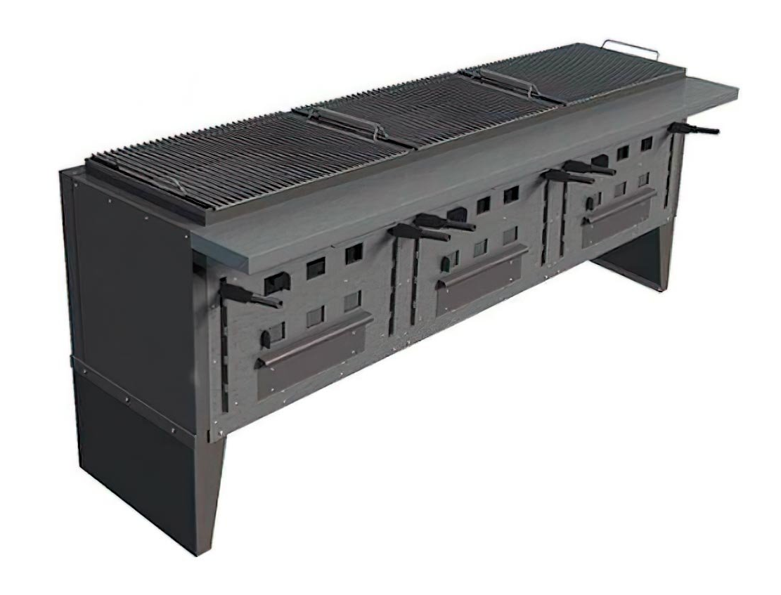 Печь-мангал Vesta VEGA 3 предназначена для приготовления блюд на углях на предприятиях общественного питания. Корпус выполнен из стали толщиной 5 мм, наружная обшивка и технологический стол - из нержавеющей стали, узел подъема колосниковой решетки имеет дополнительные сменные стенки из стали толщиной 5 мм, колосниковая решетка - из специальной жаростойкой стали 17Г1С (котельная сталь) толщиной 6 мм, решетка для жарки - из прутков нержавеющей стали диаметром 6 мм.