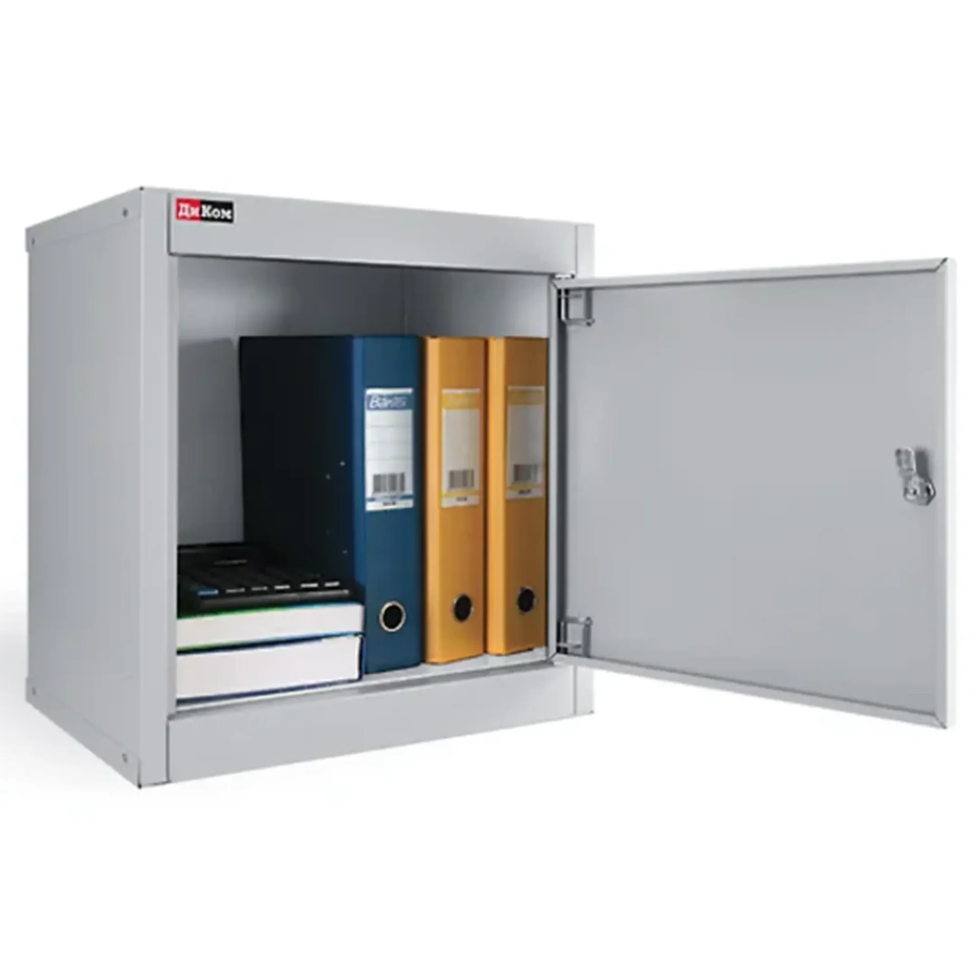 - Надежная и прочная конструкция — шкаф изготовлен из качественной листовой стали с антикоррозийным порошковым покрытием, что обеспечивает долговечность, устойчивость к механическим воздействиям и защиту содержимого. Распашная дверца оснащена надежным встроенным замком с ключом для обеспечения безопасности хранимых предметов.