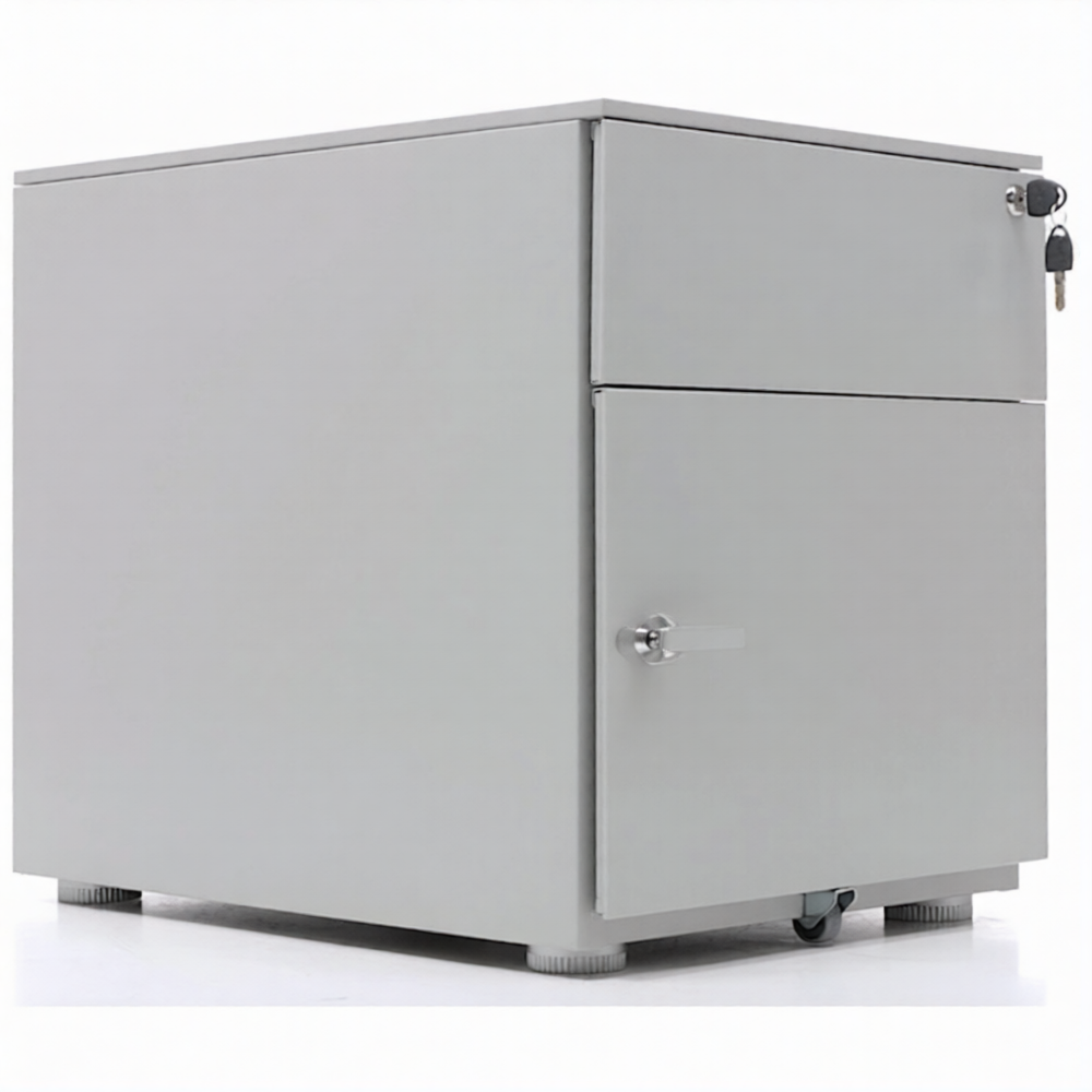 Опции: пластиковые лотки и металлический ящик для канцелярских принадлежностей и других предметов. Возможность комбинирования цветов: корпус + фасады ящиков и крышка (конструкция тумбы металл+металл). Или отделка фасадов ящиков и крыши тумбы ламинированной плитой ЛДСП (конструкция тумбы металл+ЛДСП)