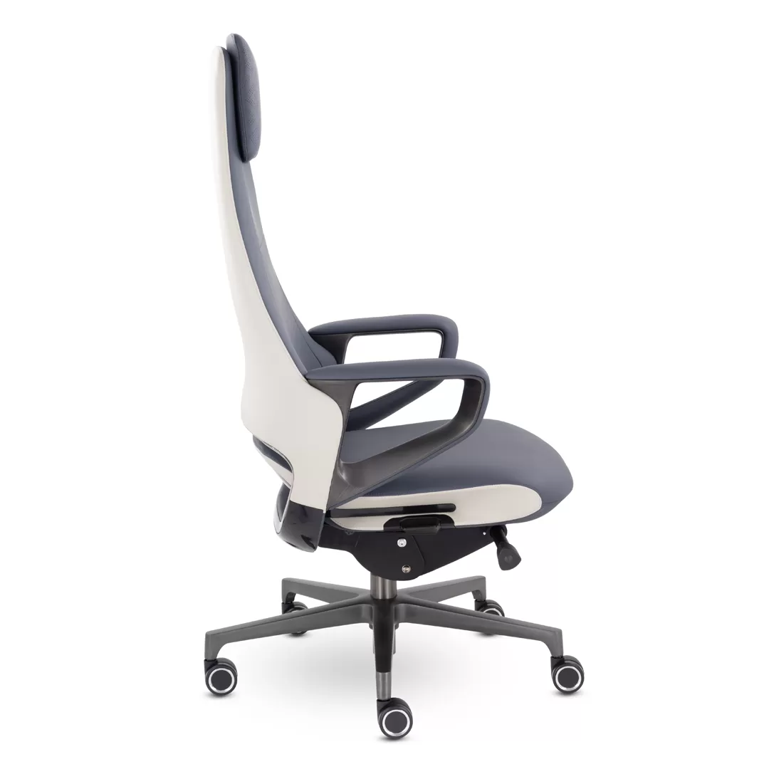 Кресло EPIK A-001-MV 201-235 (темно‑синий/кремовый) — современное кресло руководителя с мягкой обивкой из экокожи и стильным дизайном. Модель сочетает комфорт, функциональные регулировки и прочную конструкцию, что делает её отличным решением для офисных кабинетов, переговорных и рабочих зон.