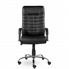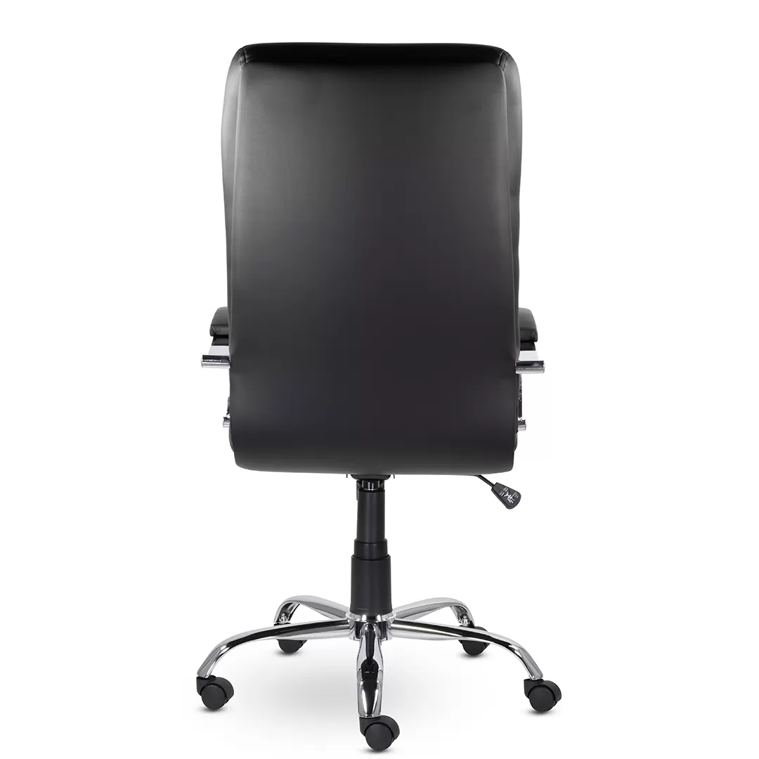 Массивное кресло руководителя оснащено горизонтальными прострочками по всей ширине спинки и хромированными подлокотниками с мягкими накладками. Механизм качания позволяет регулировать высоту сиденья, обеспечивает режим свободного качания и фиксацию каркаса в рабочем положении. Максимальная нагрузка составляет 120 кг.