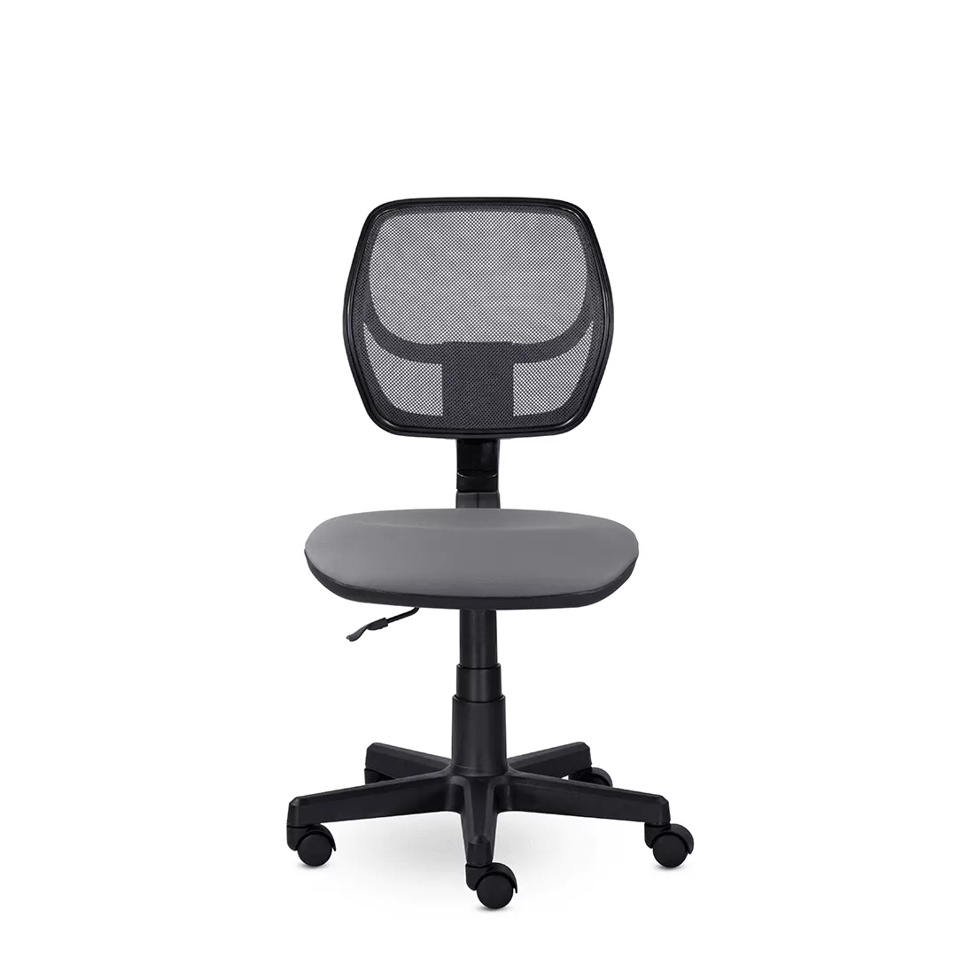 - Эргономичная поддержка спины без подлокотников — анатомическая форма спинки обеспечивает комфортную посадку и способствует правильной осанке, а отсутствие подлокотников делает кресло более компактным и удобным для работы за столом стандартной высоты.