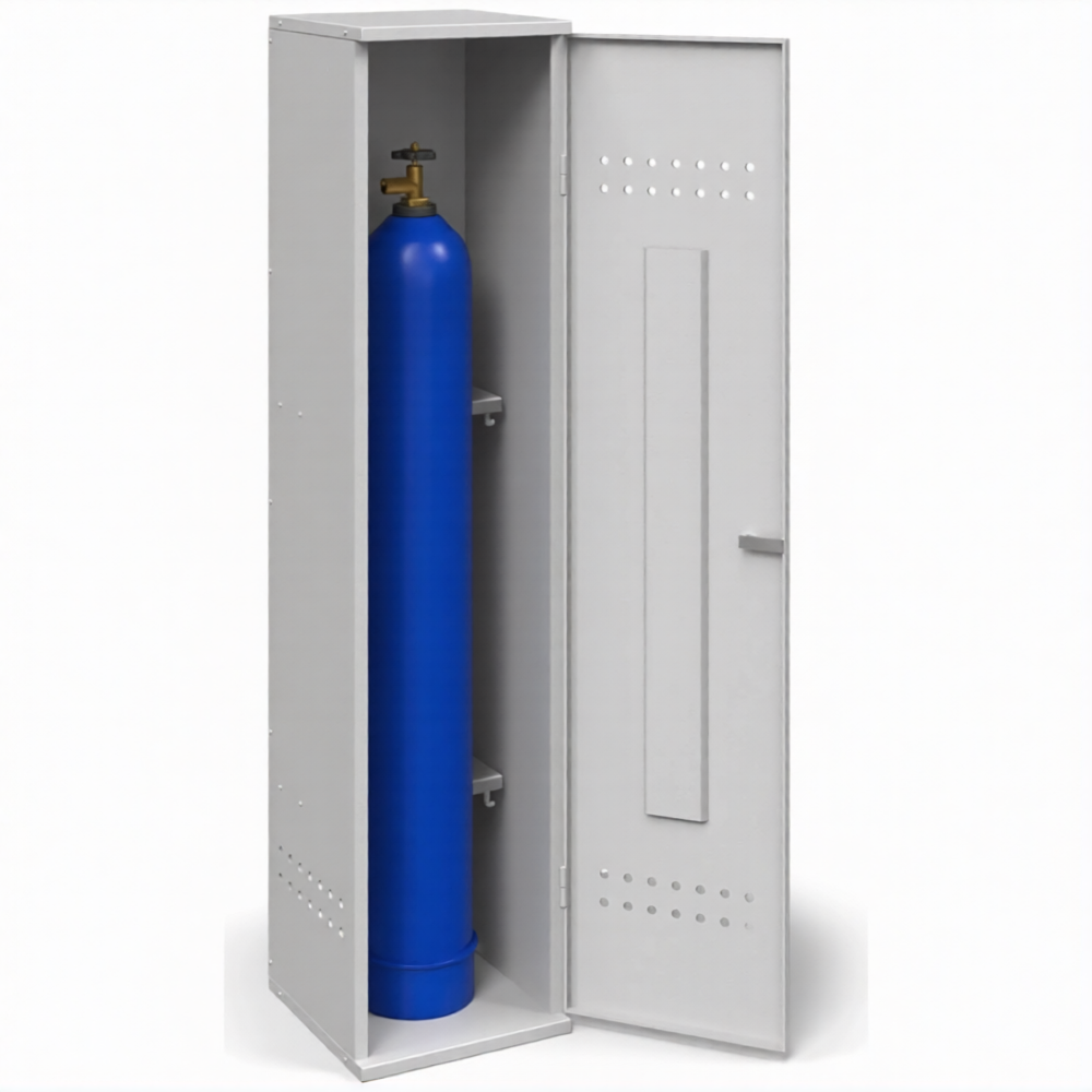 - Самая доступная цена на рынке — использование тонколистовой стали делает эту модель самым бюджетным вариантом для хранения одного баллона. Это оптимальный выбор для тех, кому важно соблюсти базовые требования безопасности или просто навести порядок в хозяйстве без значительных финансовых вложений.