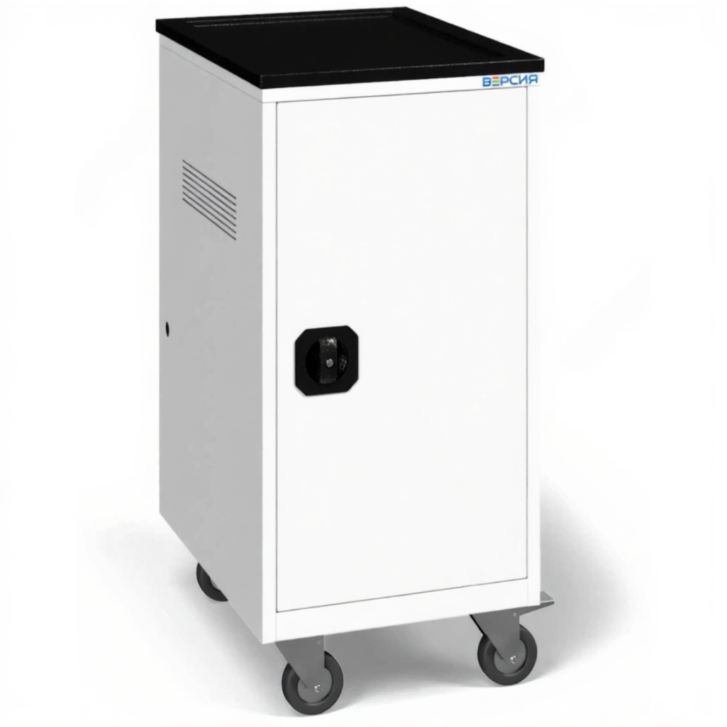 - Повышенная мобильность и безопасность — прочная металлическая рама на колесах обеспечивает легкое перемещение тяжелого груза, а надежные замки защищают дорогостоящее оборудование от кражи и несанкционированного доступа.