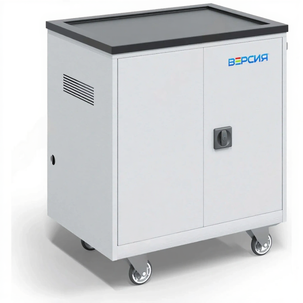 Тележка для хранения и зарядки 30 ноутбуков (15,6 дюймов) с электросхемой — это комплексное профессиональное решение для создания мобильного, безопасного и всегда готового к работе IT-класса или рабочей станции. Модель представляет собой усиленную мобильную тележку, оснащенную интеллектуальной системой электропитания (электросхемой) и рассчитанную на 30 ноутбуков стандартной диагонали 15,6 дюйма. Она обеспечивает не только физическую защиту и транспортировку устройств, но и их централизованную синхронную зарядку с полным контролем процесса.