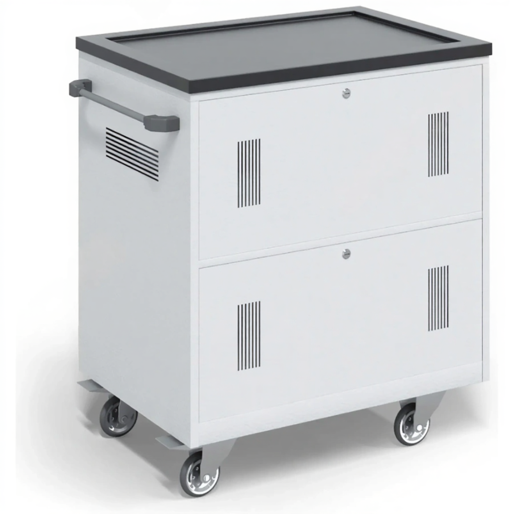 - Полная автоматизация зарядки — встроенная электросхема обеспечивает интеллектуальное распределение мощности, безопасно и одновременно заряжая все 30 ноутбуков от одной розетки, с защитой от перегрузок, короткого замыкания и контролем статуса каждого устройства.